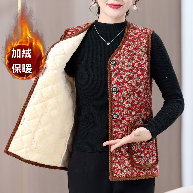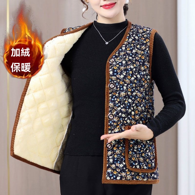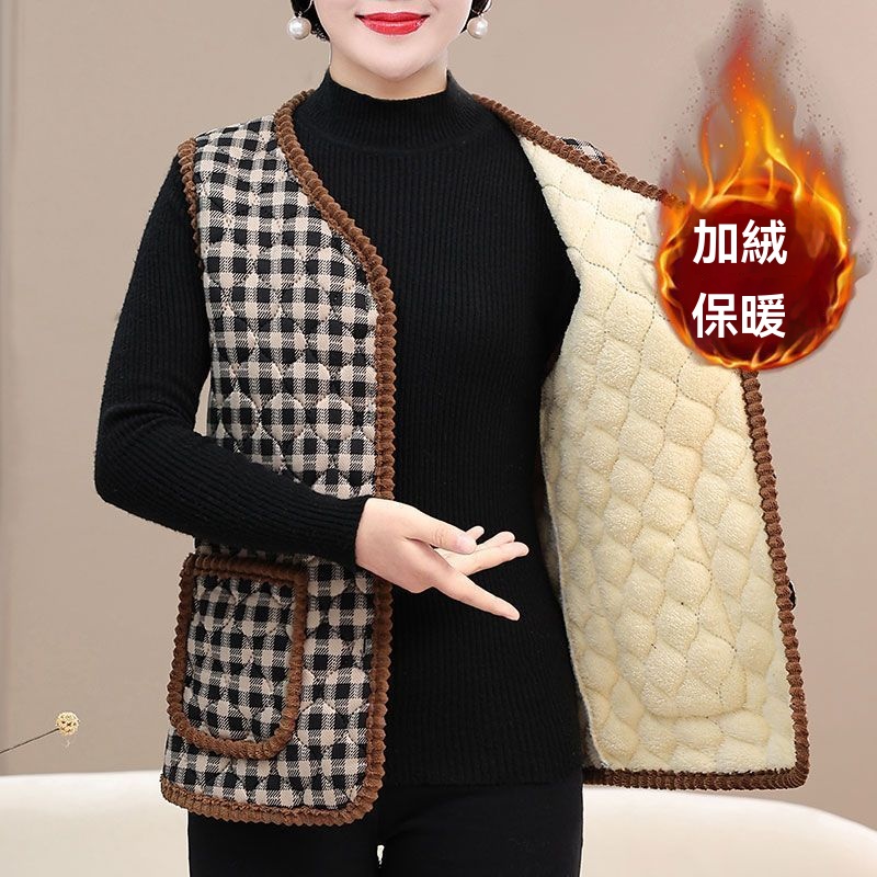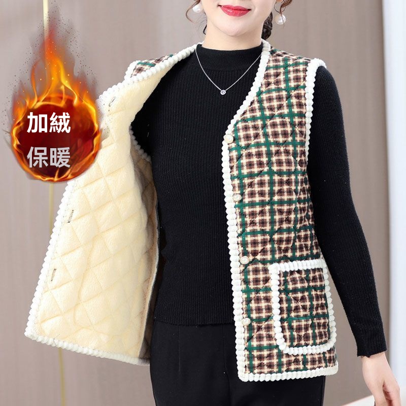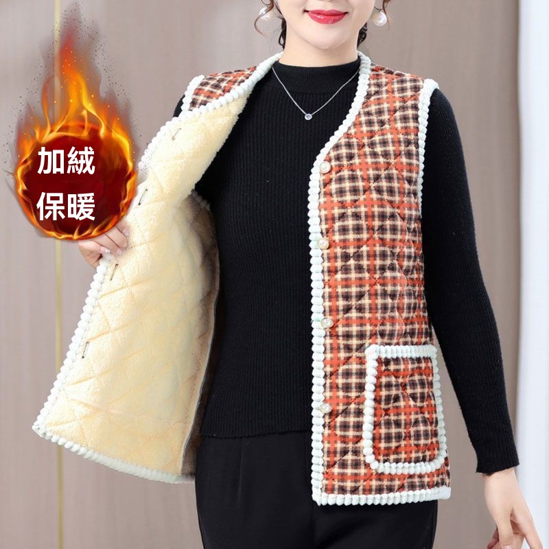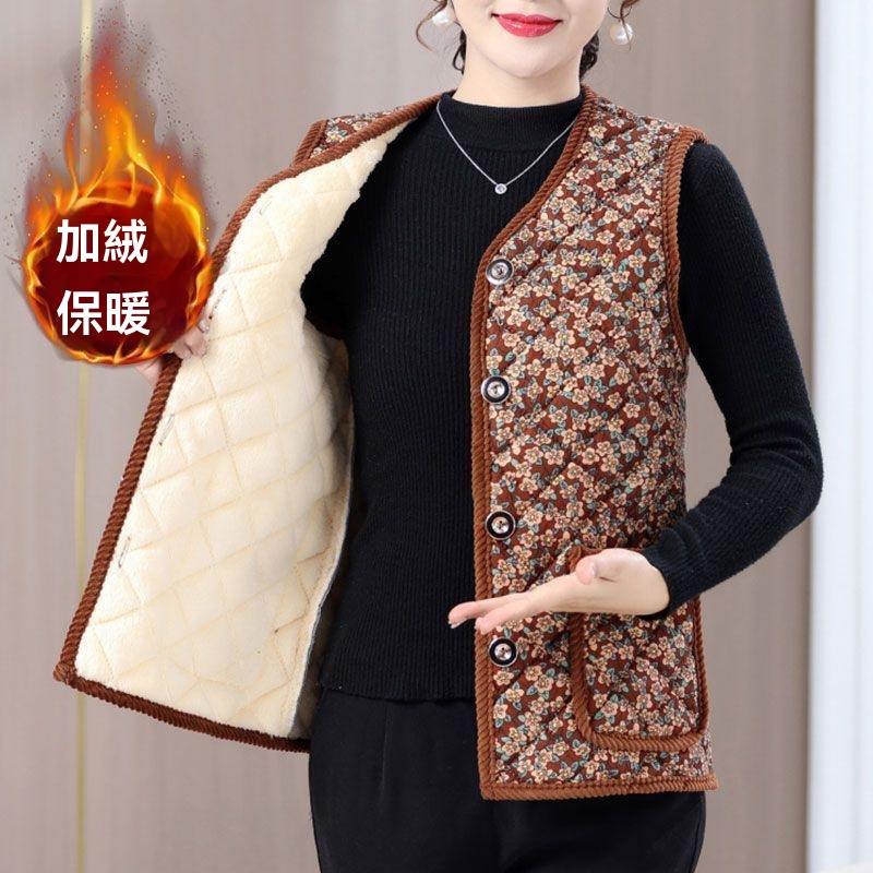 秋冬新款 時尚馬甲上衣坎肩 媽媽裝棉馬甲 加絨保暖 背心外套