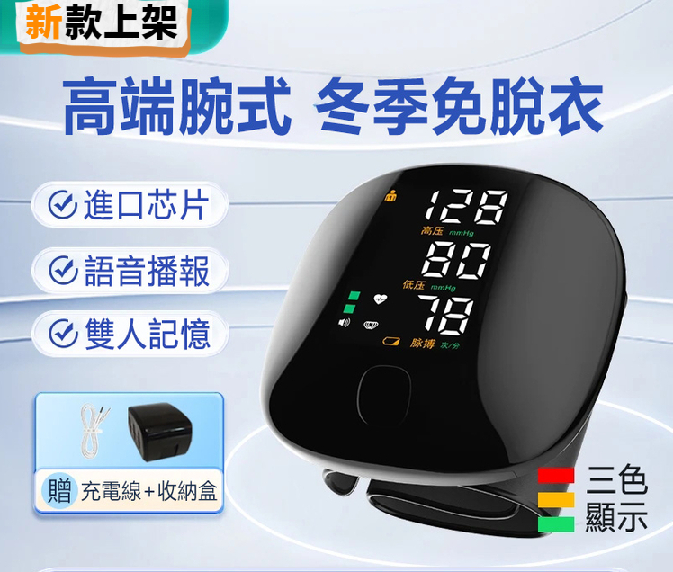 手腕式電子血壓計 30秒快速顯示血壓心率 大螢幕搭配語音播報 長輩輕鬆上手
